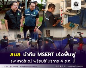 สบส.เร่งสำรวจ รพ. ในพื้นที่ จ.ปัตตานี พร้อมให้กำลังใจ อสม. หลังได้รับผลกระทบนํ้าท่วม 14/01/2026 3:15 PM