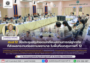 ศบส.12 จัดประชุมสรุปถอดบทเรียนสถานการณ์อุทกภัย ที่ส่งผลกระทบต่อสถานพยาบาล ในพื้นที่เขตสุขภาพที่ 12 12/02/2026