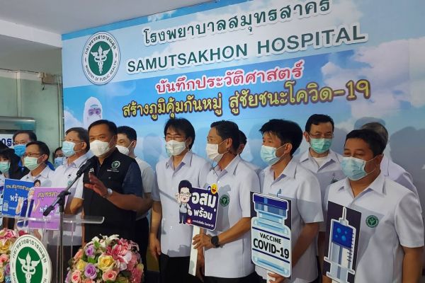 วันที่ 28 กุมภาพันธ์ 2564 ณ โรงพยาบาลสมุทรสาคร นายแพทย์ธเรศ กรัษนัยรวิวงค์ อธิบดีกรมสนับสนุนบริการสุขภาพ ร่วมตรวจเยี่ยมและให้กำลังใจ ในการฉีดวัคซีนในวันแรกของจังหวัดสมุทรสาคร โดยมีนายอนุทิน ชาญวีรกูล รองนายกรัฐมนตรี และรัฐมนตรีว่าการกระทรวงสาธารณสุข และคณะผู้บริหารกระทรวงสาธารณสุข ลงพื้นที่ตรวจเยี่ยมและให้กำลังใจในครั้งนี้ด้วย ทั้งนี้ ทีมอาสาสมัครสาธารณสุขประจหมู่บ้าน (อสม.) ได้ร่วมต้อนรับผู้บริหาร และเป็นกลุ่มแรกที่เข้ารับการฉีดวัคซีนโควิด 19 ซึ่งเป็นด่านหน้าในการเฝ้าระวังป้องกันโควิด 19 และเป็นกำลังหลักสำคัญในการควบคุม ป้องกันสถานการณ์โควิด 19 ในชุมชน