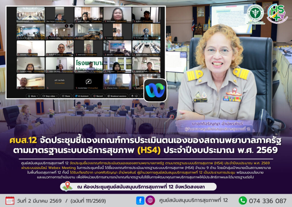 ศบส.12 จัดประชุมชี้แจงเกณฑ์การประเมินตนเองของสถานพยาบาลภาครัฐ ตามมาตรฐานระบบบริการสุขภาพ (HS4) ประจำปีงบประมาณ พ.ศ. 2569