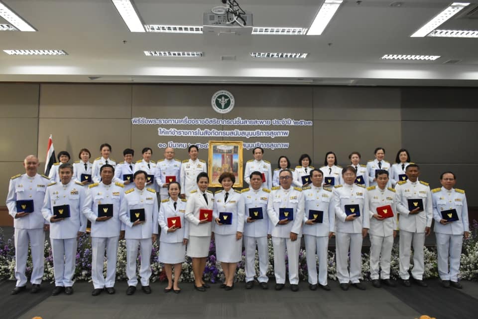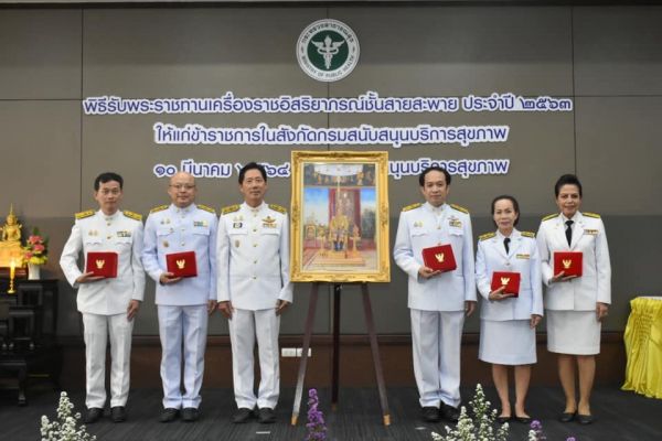 พิธีรับพระราชทานเครื่องราชอิสริยาภรณ์ชั้นสายสะพาย ประจำปี 2563 ให้แก่ข้าราชการในสังกัดกรมสนับสนุนบริการสุขภาพ ในวันที่ 10 มีนาคม 2564 ณ กรมสนับสนุนบริการสุขภาพ