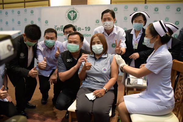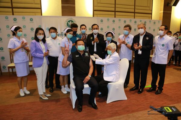 วันที่ 28 กุมภาพันธ์ 2564 ณ สถาบันบำราศนราดูร กระทรวงสาธารณสุข นายแพทย์ธเรศ กรัษนัยรวิวงค์ อธิบดีกรมสนับสนุนบริการสุขภาพ และอาสาสมัครสาธารณสุขประจำหมู่บ้าน (อสม.) ซึ่งเป็นกลุ่มแรกที่เป็นด่านหน้าในการลงพื้นที่เฝ้าระวังโควิด 19 ในชุมชน ได้เข้ารับการฉีดวัคซีนโควิด 19 ร่วมกับนายอนุทิน ชาญวีรกูล รองนายกรัฐมนตรี และรัฐมนตรีว่าการกระทรวงสาธารณสุข และทีมผู้บริหารกระทรวงสาธารณสุข เพื่อสร้างความมั่นใจว่า วัคซีนโควิด 19 ปลอดภัย ในการสร้างภูมิคุ้มกัน ช่วยลดความรุนแรงของโรค เพื่อให้เศรษฐกิจของประเทศสามารถเดินหน้าต่อไปได้