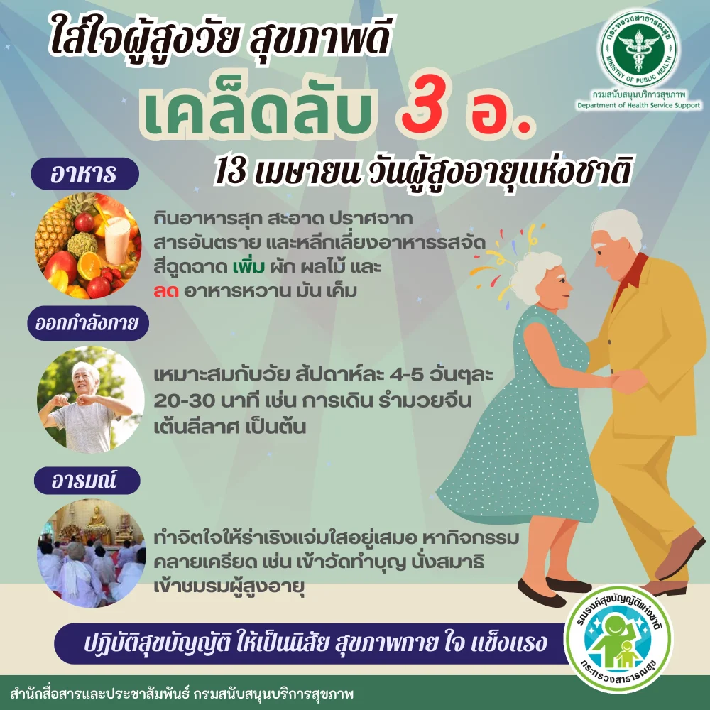 13 เมษายน วันผู้สูงอายุ ใส่ใจผู้สูงวัย สุขภาพดีด้วย…เคล็ดลับ 3อ.00