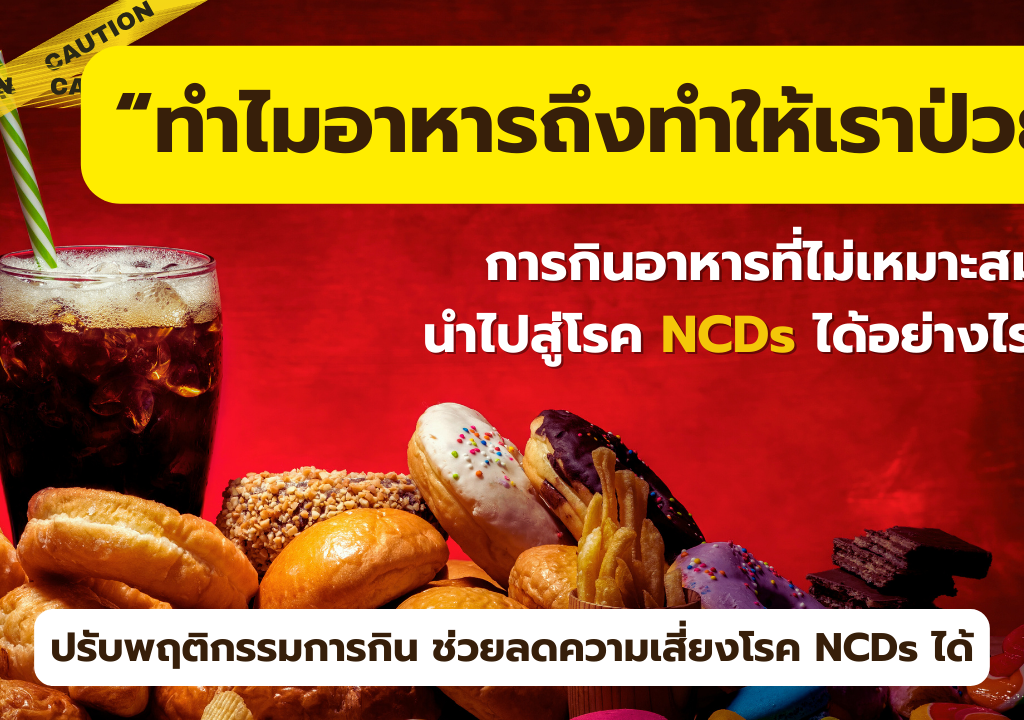 File Download การกินอาหารที่ไม่เหมาะสมนำไปสู่โรค NCDs ได้อย่างไร ? กลุ่มโรคไม่ติดต่อเรื้อรัง หรือโรค NCDs เกิดจากการมีพฤติกรรมเสี่ยงต่าง ๆ ได้แก่ การกินอาหารที่มีรสจัด การดื่มแอลกอฮอล์เป็นประจำ การสูบบุหรี่จัด รวมถึงการออกกำลังกายที่ไม่เพียงพอ โดยอาการในกลุ่มโรค NCDs นี้ จะไม่ป่วยโดยทันที แต่จะค่อย ๆ สะสมจนเกิดโรคในอนาคต ซึ่งกลุ่มโรค NCDs ที่มีผู้ป่วยและผู้เสียชีวิตสูงสุด ได้แก่ โรคเบาหวาน โรคหลอดเลือดสมองและหัวใจ โรคถุงลมโป่งพอง โรคมะเร็ง โรคความดันโลหิตสูง และโรคอ้วนลงพุง กินอาหารไม่เหมาะสม ทำให้เราป่วยเป็นโรค NCDs ได้อย่างไร ? พฤติกรรมการกินที่ไม่เหมาะสม อาจทำให้เกิดความเสี่ยงต่อการเป็นโรค NCDs ได้ ดังนี้ กินแต่คาร์โบไฮเดรต เช่น กินบะหมี่กึ่งสำเร็จรูปจะได้แต่แป้ง ขาดสารอาหารประเภทวิตามิน โปรตีน และแร่ธาตุ ทำให้เกิดโรคอ้วน กินแต่ข้าวขัดขาว จะได้รับไฟเบอร์หรือใยอาหารน้อย ควรกินข้าวกล้อง หรือขนมปังโฮลวีทร่วมด้วย กินเฉพาะเนื้อสัตว์ใหญ่ ๆ […]