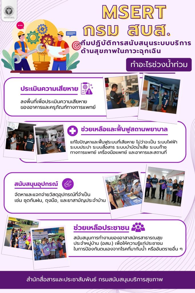 MSERT กรม สบส. ทีมปฏิบัติการสนับสนุนระบบบริการด้านสุขภาพในภาวะฉุกเฉิน ทำอะไรช่วงน้ำท่วม