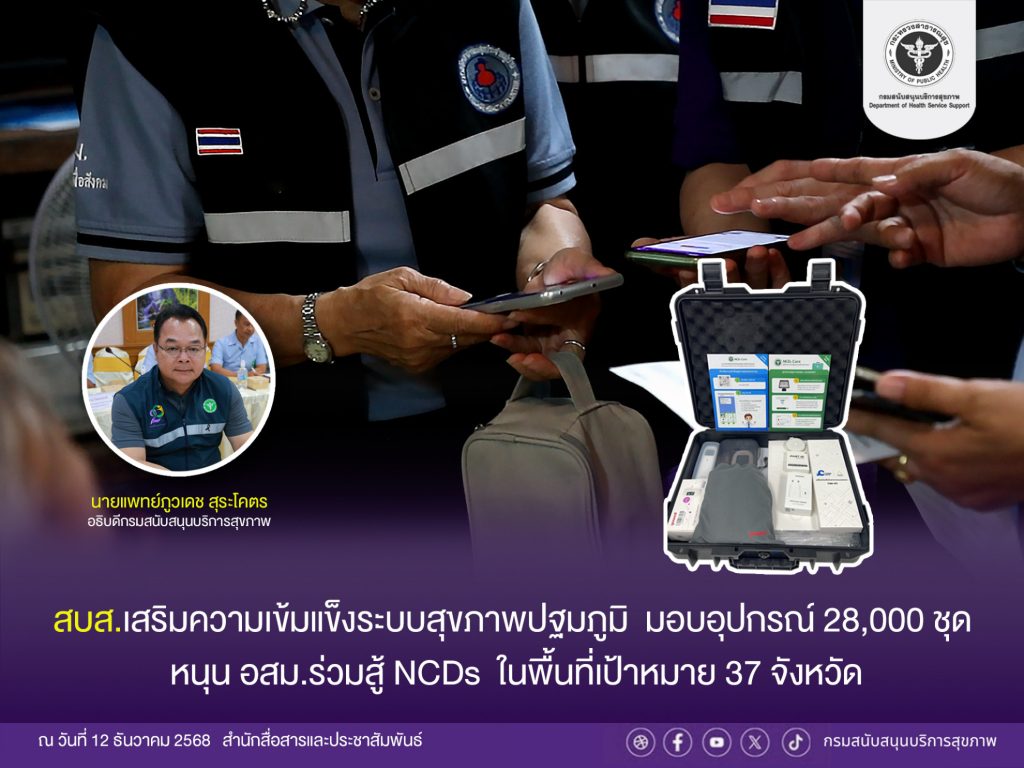 สบส.เสริมความเข้มแข็งระบบสุขภาพปฐมภูมิ มอบอุปกรณ์ 28,000 ชุด หนุน อสม.ร่วมสู้ NCDs ในพื้นที่เป้าหมาย 37 จังหวัด