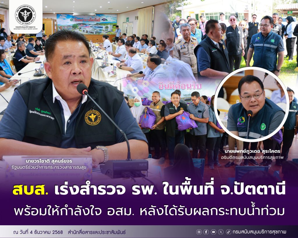 สบส.เร่งสำรวจ รพ. ในพื้นที่ จ.ปัตตานี พร้อมให้กำลังใจ อสม. หลังได้รับผลกระทบนํ้าท่วม