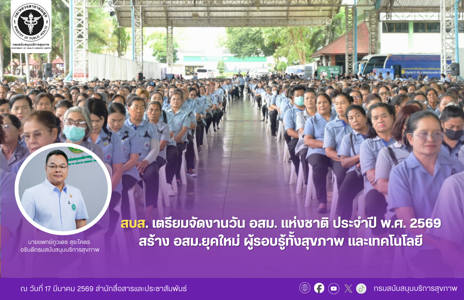 สบส. เตรียมจัดงานวัน อสม. แห่งชาติ ประจำปี พ.ศ. 2569 สร้าง อสม.ยุคใหม่ ผู้รอบรู้ทั้งสุขภาพ และเทคโนโลยี