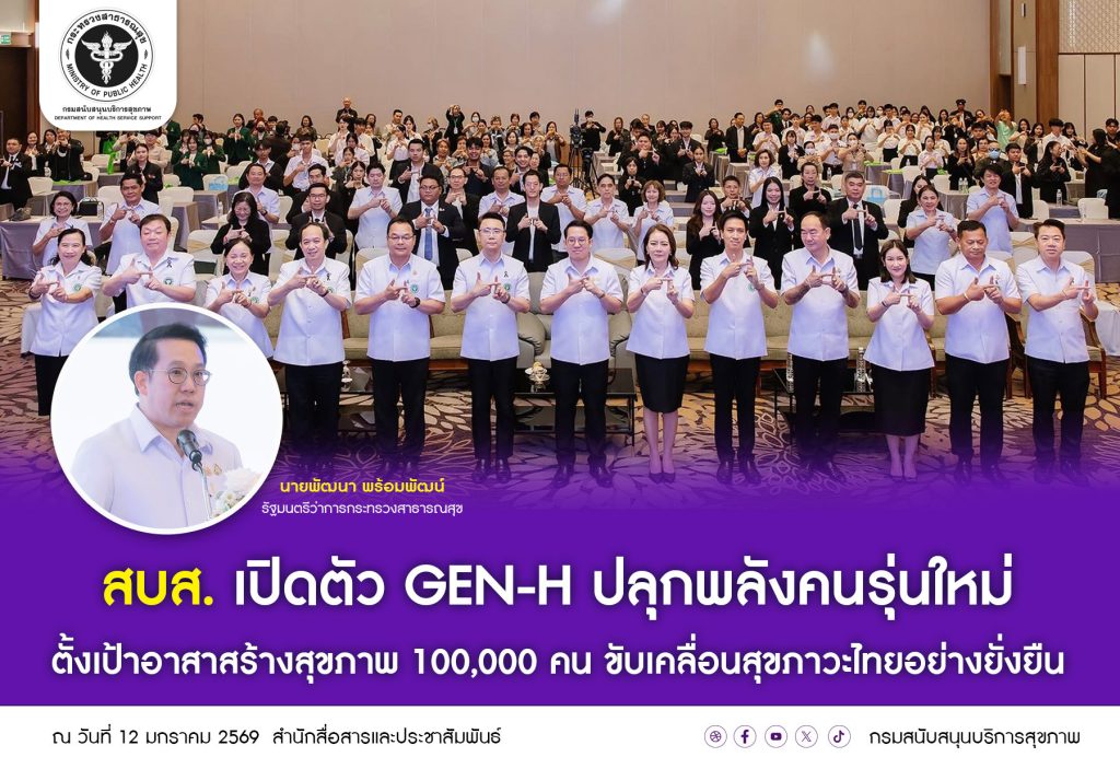 สบส. เปิดตัว Gen-H ปลุกพลังคนรุ่นใหม่ ตั้งเป้าอาสาสร้างสุขภาพ 100,000 คน ขับเคลื่อนสุขภาวะไทยอย่างยั่งยืน