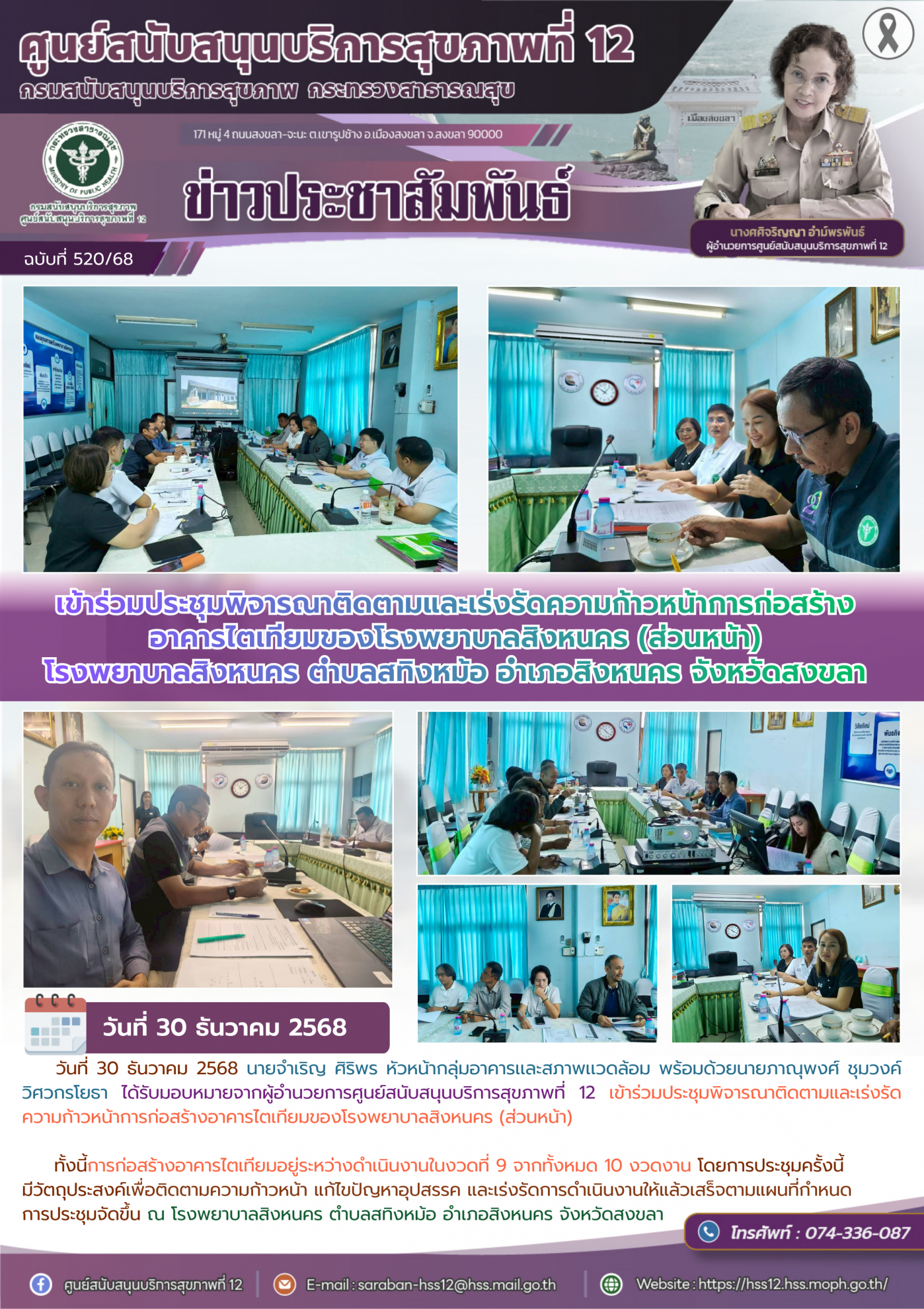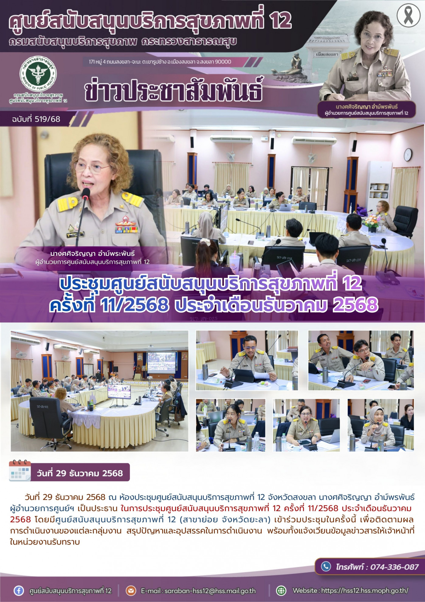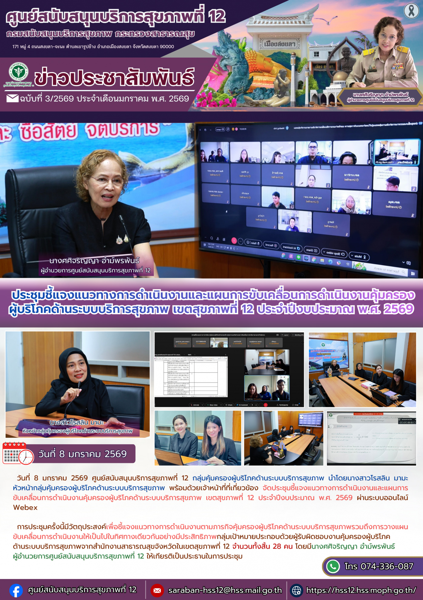 ศบส.12 ร่วมประชุมชี้แจงแนวทางการตรวจราชการและนิเทศงานกรณีปกติเขตสุขภาพที่ 12 ประจำปีงบประมาณ 2569