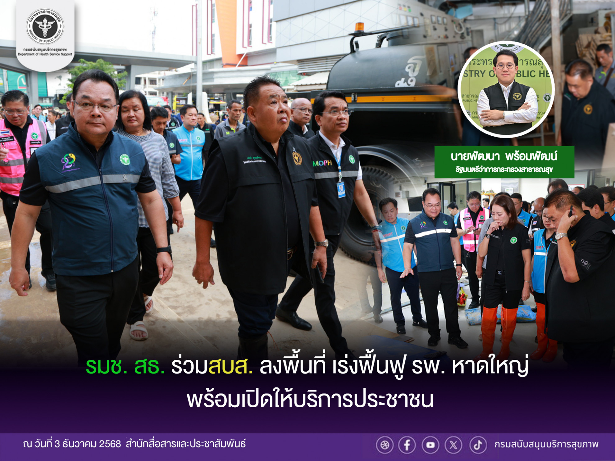 รมช.สธ. ร่วมสบส. ลงพื้นที่เร่งฟื้นฟู รพ.หาดใหญ่ พร้อมเปิดให้บริการประชาชนby Admin-pr03/12/202515/01/2026รมช.สธ. ร่วมสบส. ลงพื้นที่เร่งฟื้นฟ…