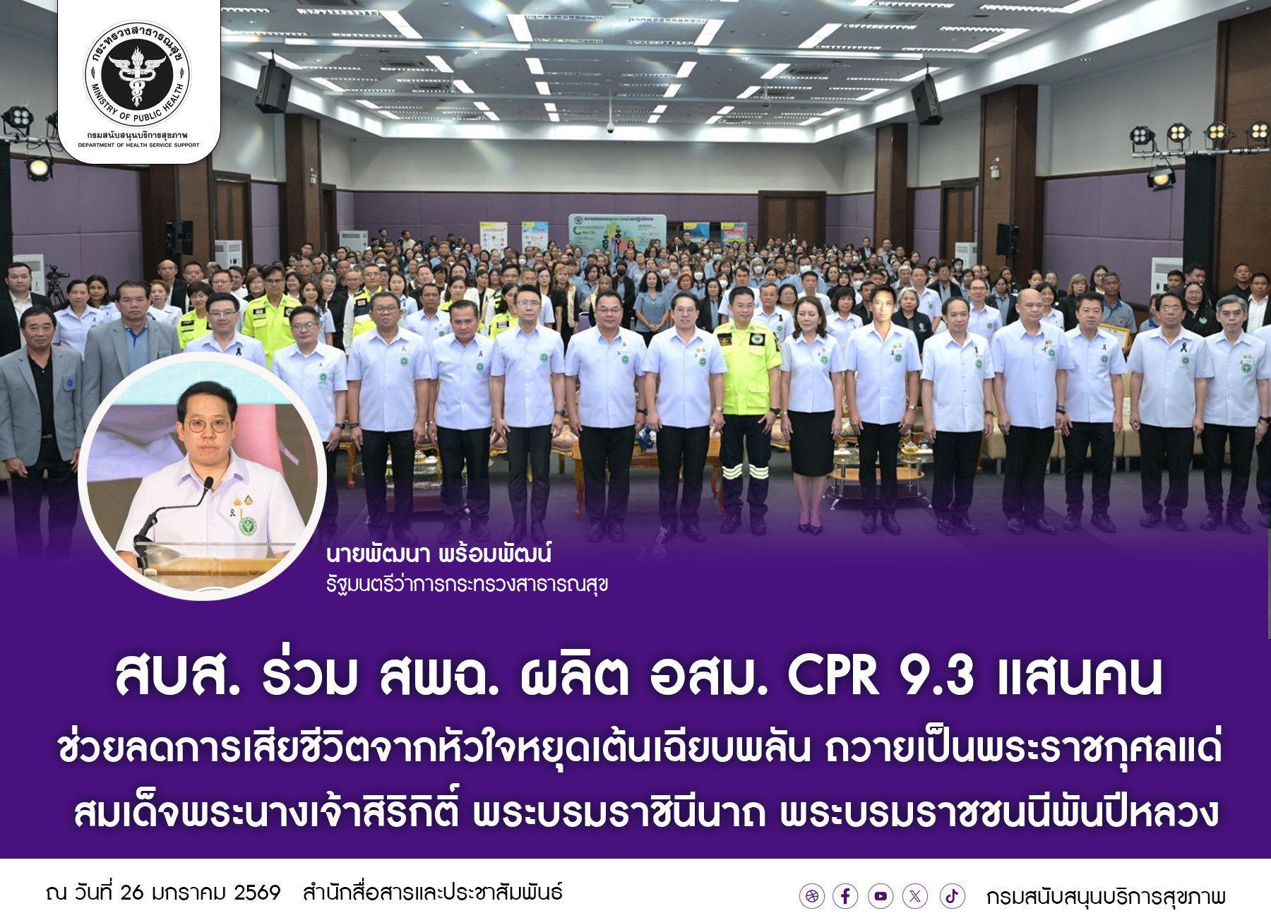 สบส. ร่วม สพฉ. ผลิต อสม. CPR 9.3 แส…