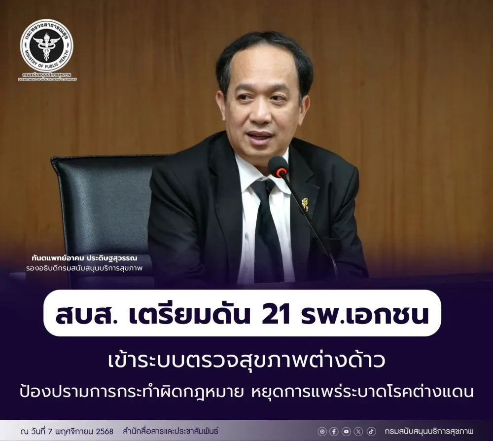 สบส. รับลูก สธ. ตั้งทีมเฝ้าระวังสถานพยาบาลออกใบรับรองแพทย์ในกลุ่มแรงงานต่างด้าว หยุดการแพร่ระบาดของโรคต่างแดน 08/10/2025 11:33 AM