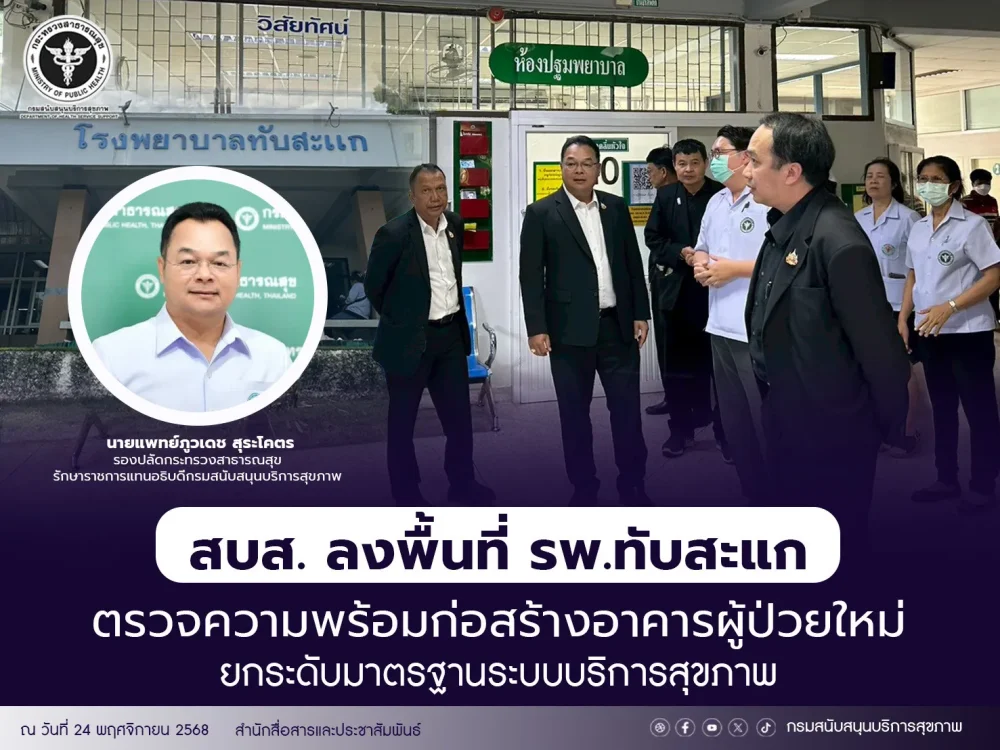 สบส.ลงพื้นที่ รพ.ทับสะแก ตรวจความพร้อมก่อสร้างอาคารผู้ป่วยใหม่ยกระดับมาตรฐานระบบบริการสุขภาพ 25/11/2025 3:30 PM